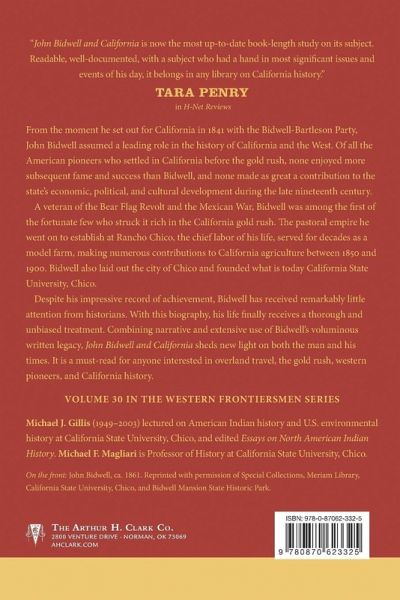 DESCRIPTION AUTHOR BIO Bidwell's life finally receives a thorough and unbiased treatment in this new biography. Combining narrative and extensive use of Bidwell's voluminous written legacy, John Bidwell and California sheds new light on both the man and his times. It is a must for every reader interested in overland travel, the Gold Rush, Western pioneers and California history. A thoughtful and even visionary man of deep convictions, balanced by practical common sense, Bidwell was blessed with keen powers of observation and a gift for prose. His published and unpublished work treats just about every imaginable aspect of life in California between 1841 and 1900. From the moment he set out for California in 1841 with the Bidwell-Bartleson Party, Bidwell assumed a leading role in the history of California and the West. Of all the American pioneers who settled in California before the gold rush, none enjoyed more subsequent fame and success than Bidwell, and none made as great a contribution to the state's economic, political, and cultural development during the late nineteenth century. A veteran of the Bear Flag Revolt and the Mexican War, Bidwell was among the first of the fortunate few who struck it rich in the California gold rush. The pastoral empire he went on to establish at Rancho Chico, the chief and constant labor of his life, served for decades as a model farm, making numerous contributions to California agriculture between 1850 and 1900. Bidwell pursued a career of public service capped by his famous but largely ceremonial campaign for the Presidency in 1892 at the head of the Prohibition party ticket. Before that, he had served in the California state senate and the United States House of Representatives; run four times for governor; held three important gubernatorial appointments; laid out the city of Chico; and founded what became today's California State University, Chico. Despite this impressive record of achievement, Bidwell has received remarkably little attention from historians. John Bidwell and California is an objective look at the man and his times, debunking the celebratory school which produced earlier biographies. Interaction with Indians and Chinese. Bidwell's attitudes and behavior towards Indians seem to have been governed by a complex blend of curiosity, humanitarianism, and pragmatic self-interest. His continuous employment of Chinese on his rancho brought the threat of violence to his very doorstep on more than one occasion. Two chapters explore these complex subjects. A "Bidwell Bibliography" of sixteen pages is included, providing a thorough guide to sources, both published and unpublished. Michael J. Gillis has been a Lecturer in History at California State University, Chico, for over twenty years. He has published articles on the Bidwell-Bartleson Party and John Muir's friendship with the Bidwells. He teaches courses in Native American History and American Environmental History.
