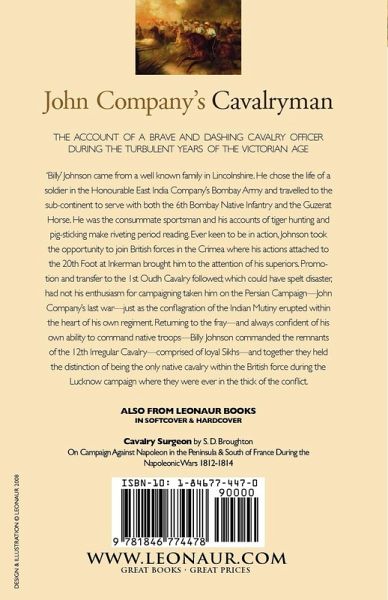 The account of a brave and dashing cavalry officer during the turbulent years of the Victorian age 'Billy' Johnson came from a well known family in Lincolnshire. He chose the life of a soldier in the Honourable East India Company's Bombay Army and travelled to the sub-continent to serve with both the 6th Bombay Native Infantry and the Guzerat Horse. He was the consummate sportsman and his accounts of tiger hunting and pig-sticking make riveting period reading. Ever keen to be in action, Johnson took the opportunity to join British forces in the Crimea where his actions attached to the 20th Foot at Inkerman brought him to the attention of his superiors. Promotion and transfer to the 1st Oudh Cavalry followed; which could have spelt disaster, had not his enthusiasm for campaigning taken him on the Persian Campaign-John Company's last war-just as the conflagration of the Indian Mutiny erupted within the heart of his own regiment. Returning to the fray-and always confident of his own ability to command native troops-Billy Johnson commanded the remnants of the 12th Irregular Cavalry-comprised of loyal Sikhs-and together they held the distinction of being the only native cavalry within the British force during the Lucknow campaign where they were ever in the thick of the conflict.