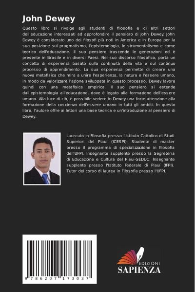 Questo libro si rivolge agli studenti di filosofia e di altri settori dell'educazione interessati ad approfondire il pensiero di John Dewey. John Dewey è considerato uno dei filosofi più noti in America e in Europa per la sua posizione sul pragmatismo, l'epistemologia, lo strumentalismo e come teorico dell'educazione. Il suo pensiero trascende le generazioni ed è presente in Brasile e in diversi Paesi. Nel suo discorso filosofico, porta un concetto di esperienza basato sulla continuità della vita e sul continuo processo di apprendimento. La sua esperienza permette di creare una nuova metafisica che mira a unire l'esperienza, la natura e l'essere umano, in modo da valorizzare l'azione sviluppata in questo processo. Dewey lavora quindi con una metafisica empirica. Il suo pensiero si estende dall'epistemologia all'educazione, dove è legato alla formazione dell'essere umano. Alla luce di ciò, è possibile vedere in Dewey una forte attenzione alla formazione della coscienza dell'essere umano in tutti gli ambiti. In questo libro, l'autore offre ai lettori una base teorica e un'introduzione al pensiero di Dewey.