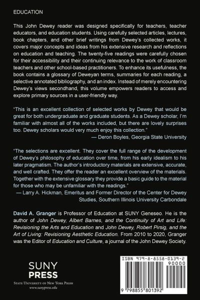 Designed specifically for teachers and education students, with carefully selected articles, lectures, and book chapters covering Dewey's major ideas. This John Dewey reader was designed specifically for teachers, teacher educators, and education students. Using carefully selected articles, lectures, book chapters, and other brief writings from Dewey's collected works, it covers major concepts and ideas from his extensive research and reflections on education and teaching. The twenty-five readings were carefully chosen for their accessibility and their continuing relevance to the work of classroom teachers and other school-based practitioners. To enhance its usefulness, the book contains a glossary of Deweyan terms, summaries for each reading, a selective annotated bibliography, and an index. Instead of merely encountering Dewey's views secondhand, this volume empowers readers to access and explore primary sources in a user-friendly way.