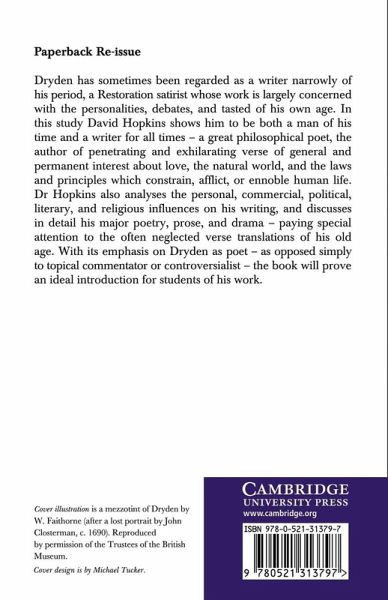 This book, with its emphasis on Dryden as a poet - as opposed simply to topical commentator or controversialist - will prove an ideal introduction for students of his work.