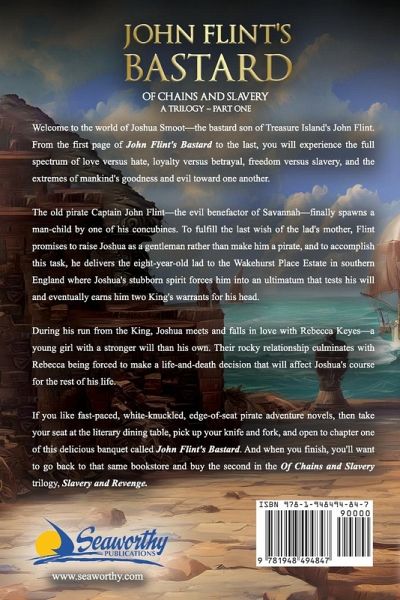 Welcome to the world of Joshua Smoot-the bastard son of Treasure Island's John Flint. From the first page of John Flint's Bastard to the last, you will experience the full spectrum of love versus hate, loyalty versus betrayal, freedom versus slavery, and the extremes of mankind's goodness and evil toward one another. The old pirate Captain John Flint-the evil benefactor of Savannah-finally spawns a manchild by one of his concubines. To fulfill the last wish of the lad's mother, Flint promises to raise Joshua as a gentleman rather than make him a pirate, and to accomplish this task, he delivers the eight-year-old lad to the Wakehurst Place Estate in southern England where Joshua's stubborn spirit forces him into an ultimatum that tests his will and eventually earns him two King's warrants for his head. During his run from the King, Joshua meets and falls in love with Rebecca Keyes-a young girl with a stronger will than his own. Their rocky relationship culminates with Rebecca being forced to make a life-and-death decision that will affect Joshua's course for the rest of his life. If you like fast-paced, white-knuckled, edge-of-seat pirate adventure novels, then take your seat at the literary dining table, pick up your knife and fork, and open to chapter one of this delicious banquet called John Flint's Bastard. And when you finish, you'll want to go back to that same bookseller and buy the second in the Of Chains and Slavery trilogy, Slavery and Revenge.