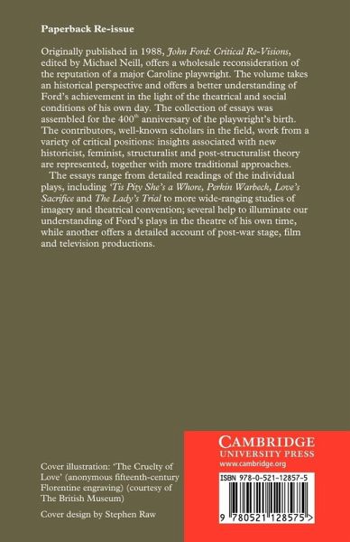 Originally published in 1988, John Ford: Critical Re-Visions offers a wholesale reconsideration of the reputation of a major Caroline playwright. The volume takes an historical perspective and offers a better understanding of Ford's achievement in the light of the theatrical and social conditions of his own day. The collection of essays was assembled for the 400th anniversary of the playwright's birth. The contributors, well known scholars in the field, work from a variety of critical positions: insights associated with a new historicist, feminist, structuralist and post-structuralist theory are represented, together with more traditional approaches. The essays range from detailed readings of the individual plays, including 'Tis Pity She's a Whore, Perkin Warbeck, Love's Sacrifice and The Lady's Trial to more wide-ranging studies of imagery and theatrical convention; several help to illuminate our understanding of Ford's plays in the theatre of his own time, while another offers a detailed account of post-war stage, film and television productions.