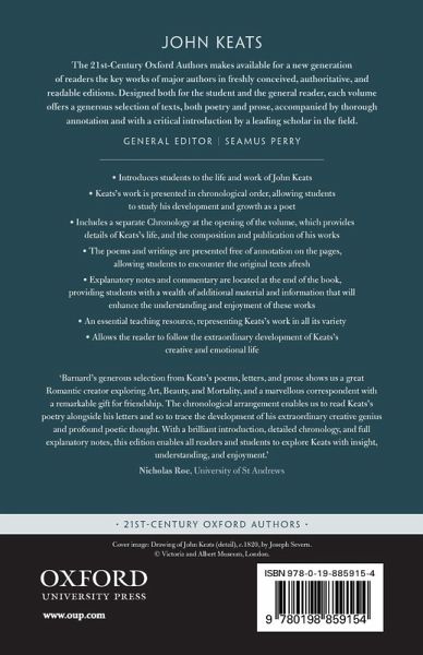 This volume in the 21st-Century Oxford Authors series offers students an authoritative, comprehensive selection of the work of John Keats (1795-1821). This edition presents Keats's texts in chronological order, and includes an Introduction, Chronology, and full commentary notes.