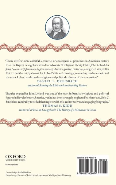 John Leland (1754-1841) was one of the most influential and entertaining religious figures in early America. As an itinerant revivalist, he demonstrated an uncanny ability to connect with a popular audience, and contributed to the rise of a democratized Christianity in America. A tireless activist for the rights of conscience, Leland also waged a decades-long war for disestablishment, first in Virginia and then in New England. Leland advocated for full religious freedom for all-not merely Baptists and Protestants-and reportedly negotiated a deal with James Madison to include a Bill of Rights in the Constitution. Leland developed a reputation for being mad for politics in early America, delivering political orations, publishing tracts, and mobilizing New England's Baptists on behalf of the Jeffersonian Republicans. He crowned his political activity by famously delivering a 1,200-pound cheese to Thomas Jefferson's White House. Leland also stood among eighteenth-century Virginia's most powerful anti-slavery advocates, and convinced one wealthy planter to emancipate over 400 of his slaves. Though among the most popular Baptists in America, Leland's fierce individualism and personal eccentricity often placed him at odds with other Baptist leaders. He refused ordination, abstained from the Lord's Supper, and violently opposed the rise of Baptist denominationalism. In the first-ever biography of Leland, Eric C. Smith recounts the story of this pivotal figure from American Religious History, whose long and eventful life provides a unique window into the remarkable transformations that swept American society from 1760 to 1840.