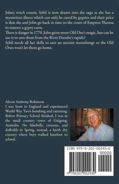 John's witch cousin, Sybil is now drawn into the saga as she has a mysterious illness which can only be cured by gypsies and their price is that she and John go back in time to the court of Empress Theresa to remove a gypsy curse. There is danger in 1770. John gains more Old One's magic, but can he use it to save them from the River Danube's rapids? Sybil needs all her skills to save an ancient moonhenge or the Old Ones won't let them go home.