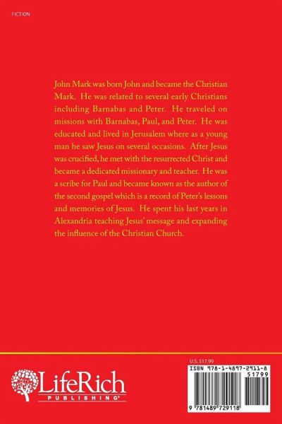 John Mark was born John and became the Christian Mark. He was related to several early Christians including Barnabas and Peter. He traveled on missions with Barnabas, Paul, and Peter. He was educated and lived in Jerusalem where as a young man he saw Jesus on several occasions. After Jesus was crucified, he met with the resurrected Christ and became a dedicated missionary and teacher. He was a scribe for Paul and became known as the author of the second gospel which is a record of Peter's lessons and memories of Jesus. He spent his last years in Alexandria teaching Jesus' message and expanding the influence of the Christian Church.