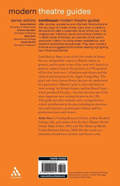 Look Back in Anger is one of the few works of drama that are indisputably central to British culture in general, and its name is one of the most well-known in postwar cultural history. Its premiere in 1956 sparked off the first "new wave" of kitchen-sink drama and the cultural phenomenon of the angry young man. The play's anti-hero, Jimmy Porter, became the spokesman of a generation. Osborne's play is a key milestone in "new writing" for British theatre, and the Royal Court-which produced the play-has since become one of the most important new writing theatres in the UK.