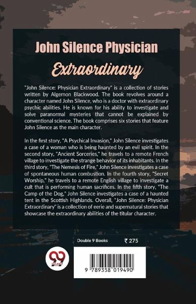 "John Silence: Physician Extraordinary" is a collection of stories written by Algernon Blackwood. The book revolves around a character named John Silence, who is a doctor with extraordinary psychic abilities. He is known for his ability to investigate and solve paranormal mysteries that cannot be explained by conventional science. The book comprises six stories that feature John Silence as the main character. In the first story, "A Psychical Invasion," John Silence investigates a case of a woman who is being haunted by an evil spirit. In the second story, "Ancient Sorceries," he travels to a remote French village to investigate the strange behavior of its inhabitants. In the third story, "The Nemesis of Fire," John Silence investigates a case of spontaneous human combustion. In the fourth story, "Secret Worship," he travels to a remote English village to investigate a cult that is performing human sacrifices. In the fifth story, "The Camp of the Dog," John Silence investigates a case of a haunted tent in the Scottish Highlands. Overall, "John Silence: Physician Extraordinary" is a collection of eerie and supernatural stories that showcase the extraordinary abilities of the titular character.