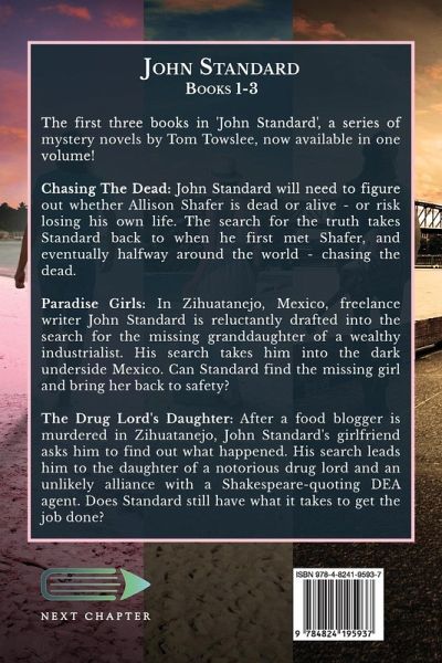 The first three books in 'John Standard', a series of mystery novels by Tom Towslee, now available in one volume! Chasing The Dead: John Standard will need to figure out whether Allison Shafer is dead or alive - or risk losing his own life. The search for the truth takes Standard back to when he first met Shafer, and eventually halfway around the world - chasing the dead. Paradise Girls: In Zihuatanejo, Mexico, freelance writer John Standard is reluctantly drafted into the search for the missing granddaughter of a wealthy industrialist. His search takes him into the dark underside Mexico. Can Standard find the missing girl and bring her back to safety? The Drug Lord's Daughter: After a food blogger is murdered in Zihuatanejo, John Standard's girlfriend asks him to find out what happened. His search leads him to the daughter of a notorious drug lord and an unlikely alliance with a Shakespeare-quoting DEA agent. Does Standard still have what it takes to get the job done?