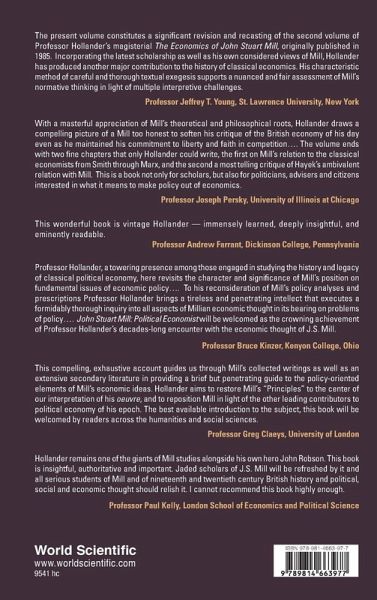 John Stuart Mill: Political Economist is a revised version of the part of Samuel Hollander's The Economics of John Stuart Mill (1985) treating the theory of economic policy. In this book, Professor Hollander offers a critical yet sympathetic analysis of Mill's quest to accomplish thorough reform of capitalism in the interest of distributive justice while protecting the security of property and contemplating the potential evolution of capitalism into cooperative organization. Part I of the book serves as an introduction to the investigation of Mill's theory of economic policy; Parts II and III include Mill's primary policy recommendations; while Part IV adds a substantial "Overview and Evaluation" reviewing the author's main conclusions. A major concern is Mill's perception of the composition of the "greatest number" whose interests are to be considered by policy-makers; here arises his attitude towards British Imperialism. The author then undertakes thematic comparisons between the positions of Mill and those of Smith, Ricardo, Malthus, Marx and Bernstein; and closes with a rejection of the celebrated criticism of Mill's "liberalism" by Friedrich Hayek.