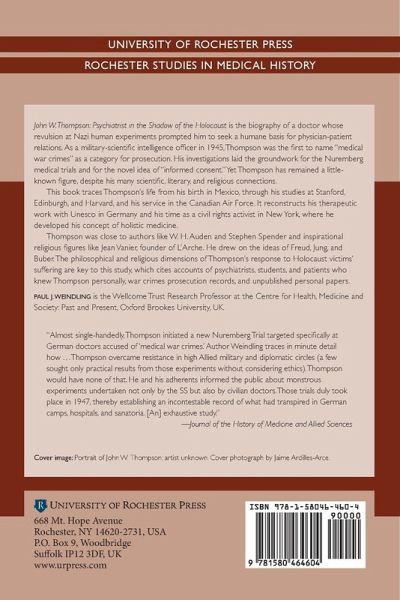 Biography of a World War II-era physician whose work was a response to the suffering of Holocaust victims, and whose investigations laid the groundwork for the Nuremberg Medical Trials. John W. Thompson: Psychiatrist in the Shadow of the Holocaust is the biography of a doctor whose revulsion at Nazi human experiments prompted him to seek a humane basis for physician-patient relations. As a military scientific intelligence officer in 1945, Thompson was the first to name "medical war crimes" as a special category for prosecution. His investigations laid the groundwork for the Nuremberg medical trials and for the novel idea of "informed consent." Yet, Thompson has remained a little-known figure, despite his many scientific, literary, and religious connections. This book traces Thompson's life from his birth in Mexico, through his studies at Stanford, Edinburgh, and Harvard, and his service in the Canadian Air Force. It reconstructs his therapeutic work with Unesco in Germany and his time as a Civil Rights activist in New York, where he developed his concept of holistic medicine. Thompson was close to authors like Auden and Spender and inspirational religious figures like Jean Vanier, founder of L'Arche. He drew on ideas of Freud, Jung, and Buber. The philosophical and religious dimensions of Thompson's response to Holocaust victims' suffering are key to this study, which cites accounts of psychiatrists, students and patients who knew Thompson personally, war crimes prosecution records, and unpublished personal papers. Paul Weindling is Wellcome Trust Research Professor at the Centre for Health, Medicine and Society: Past and Present, Oxford Brookes University, UK.
