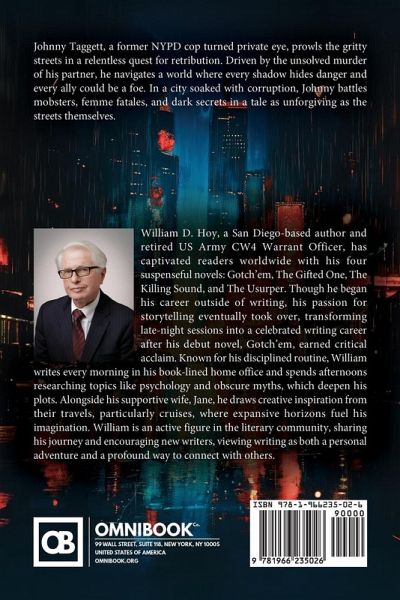 William D. Hoy, a San Diego-based author and retired US Army CW4 Warrant Officer, has captivated readers worldwide with his four suspenseful novels: Gotch'em, The Gifted One, The Killing Sound, and The Usurper. Though he began his career outside of writing, his passion for storytelling eventually took over, transforming late-night sessions into a celebrated writing career after his debut novel, Gotch'em, earned critical acclaim. Known for his disciplined routine, William writes every morning in his book-lined home office and spends afternoons researching topics like psychology and obscure myths, which deepen his plots. Alongside his supportive wife, Jane, he draws creative inspiration from their travels, particularly cruises, where expansive horizons fuel his imagination. William is an active figure in the literary community, sharing his journey and encouraging new writers, viewing writing as both a personal adventure and a profound way to connect with others.