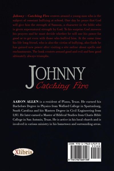 Johnny - Catching Fire centers around a young man who is the subject of constant bullying at school. One day he prays that God will give him the strength of Samson, a character in the bible who is given supernatural strength by God. To his surprise God answers his prayers and he must decide whether he will use his power for good or to get even with those who bullied him. At the same time his life long friend, who is also the victim of bullying, also finds he has gained new power after visiting a site online about spells and enchantments. The book centers around good and evil and how good ultimately always triumphs.…mehr