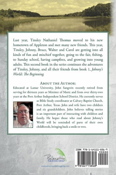 Last year, Tinsley Nathaniel Thomas moved to his new hometown of Appleton and met many new friends. This year, Tinsley, Johnny, Bruce, Walter and Carol are getting into all kinds of fun and mischief together, going to the fair, fishing, to Sunday school, having campfires, and growing into young adults. This second book in the series continues the adventures of Tinsley, Johnny, and all their friends from book 1, Johnny's World: The Beginning.
