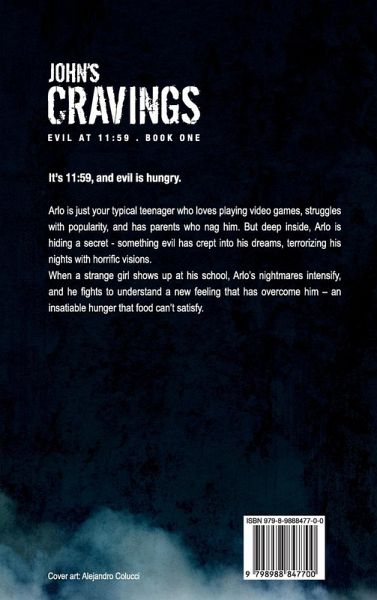 It's 11:59, and evil is hungry. Arlo is just your typical teenager who loves playing video games, struggles with popularity, and has parents who nag him. But deep inside, Arlo is hiding a secret - something evil has crept into his dreams, terrorizing his nights with horrific visions. When a strange girl shows up at his school, Arlo's nightmares intensify, and he fights to understand a new feeling that has overcome him - an insatiable hunger that food can't satisfy.