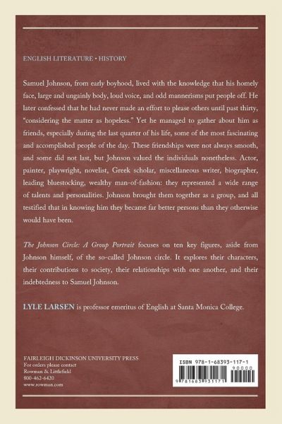 Samuel Johnson, from early boyhood, lived with the knowledge that his homely face, large and ungainly body, loud voice, and odd mannerisms put people off. He later confessed that he had never made an effort to please others until past thirty, "considering the matter as hopeless." Yet he managed to gather about him as friends, especially during the last quarter of his life, some of the most fascinating and accomplished people of the day. These friendships were not always smooth, and some did not last, but Johnson valued the individuals nonetheless. Actor, painter, playwright, novelist, Greek scholar, miscellaneous writer, biographer, leading bluestocking, wealthy man-of-fashion: they represented a wide range of talents and personalities. Johnson brought them together as a group, and all testified that in knowing him they became far better persons than they otherwise would have been. This book focuses on ten key figures, aside from Johnson himself, of the so-called Johnson circle. It explores their characters, their contributions to society, their relationships with one another, and their indebtedness to Samuel Johnson.