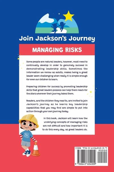 Some people are natural leaders, however, most need to continually develop to genuinely succeed in demonstrating leadership skills. Sometimes the information we review as adults make being a great leader seem challenging when actually, it is simple enough for even our children to learn. Preparing children for success by promoting leadership skills that great leaders possess can help them reach for the stars, wherever their journey takes them. Readers, and the children they read to, are invited to join Jackson's journey as he learns key leadership capabilities that you may find simple to put into action through your journey. In this book, Jackson will learn how the underlying concepts of managing risk are not difficult and how important it is to do this every day, as great leaders do.