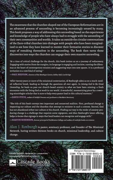 The awareness that the churches shaped out of the European Reformations are in an advanced process of unraveling is becoming increasingly sensed by many. This book proposes a way of addressing this unraveling based on the experiences and knowledge of people who have always had to struggle with the unraveling of their own communities and worlds. It takes us outside the circular conversations of the Euro-tribal churches into dialogue with people who have been marginalized to see how they have learned to reenter their formative stories to discover ways of remaking themselves in the unraveling. The book then turns these discoveries into ways the churches can engage their own massive unraveling.
