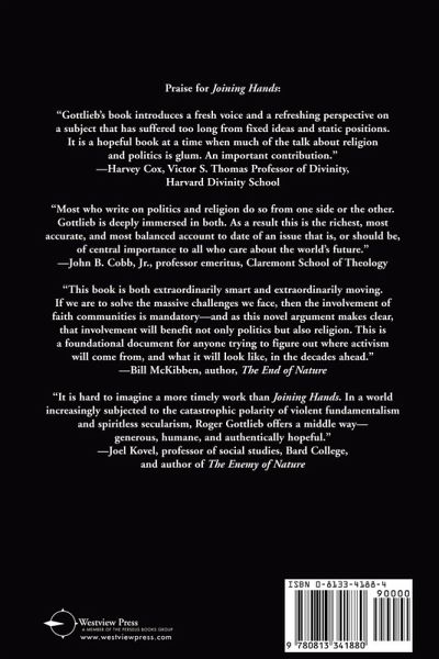 Did Martin Luther King's spiritual understanding of political struggle truly help the Civil Rights movement? Can breast cancer victims incorporate both spiritual wisdom and political action in their fight for life? Confronting questions that challenge the foundations of both politics and spirituality, Roger S. Gottlieb presents a brave new account of how religious ethics and progressive movements share a common vision of a transformed world. In doing so, he offers a bold and eloquent affirmation: that authentic religion requires an activist, transforming presence in the political world, and that the moral and psychological insights of religion are indispensable resources in political struggles for democracy, human rights and ecological sanity. With original and compelling interpretations of Martin Luther King and the civil rights struggle, feminism, disability rights, the global environmental movement, and the fight for breast cancer, Joining Hands will alter the way spiritual seekers, political activists, and society as a whole think about the political role of religion and the spiritual component of politics.