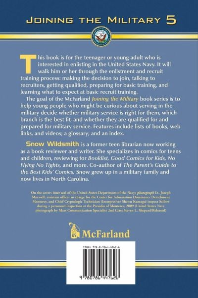This book is for the teenager or young adult who is interested in enlisting in the United States Navy. It will walk him or her through the enlistment and recruit training process: making the decision to join, talking to recruiters, getting qualified, preparing for basic training, and learning what to expect at basic recruit training. The goal of the McFarland Joining the Military book series is to help young people who might be curious about serving in the military decide whether military service is right for them, which branch is the best fit, and whether they are qualified for and prepared for military service. Features include lists of books, web links, and videos; a glossary; and an index.