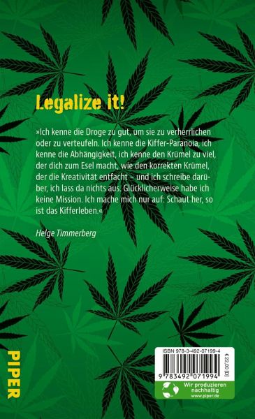 »Ich lass mir doch nicht von Gewohnheitstrinkern das Kiffen verbieten.« Der Veteran im Krieg gegen die Marihuana-Prohibition ist nun durch die Länder gereist, die Cannabis bereits legalisiert haben. Was auf uns zukommt, wenn in Deutschland zur Abwechslung mal Pragmatismus über den erhobenen Zeigefinger triumphiert, erzählt er in diesem Buch.