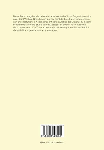I. Definition und Abgrenzung.- 1. Der Joint Venture-Begriff in der Literatur.- 2. Kriterien zur Bestimmung von Joint Ventures.- 3. Die Abgrenzung zu anderen Formen internationaler zwischenbetrieblicher Tätigkeit.- II. Typen des Joint Ventures.- 1. Der Standort als Typologisierungsmerkmal.- 2. Die Partnerstruktur als Typologisierungsmerkmal.- 3. Das Beteiligungsverhältnis als Typologisierungsmerkmal.- 4. Die Übernahme betrieblicher Funktionen als Typologisierungsmerkmal.- 5. Die Bedeutung der Typologisierungs-merkmale aus absatzwirtschaftlicher Perspektive.- III. Bestimmungsgründe für horizontale Joint Venture-Bildungen aus ausländischer Sicht und ihre Beurteilung beim Vergleich mit den Motiven des Partners.- 1. Der Einfluß politischer und Wirtschaft licher Umweltsituationen im Standortland auf die Joint Venture-Entscheidung.- 2. Der Einfluß politischer und wirtschaftlicher Umweltsituationen im Heimatland auf die Joint Venture-Entscheidung.- 3. Die Beurteilung der partnerspezifischen Gründungsmotive.- 4. Sicherung des Einflusses auf die Entscheidungsbildung und -findung im Joint Venture.- IV. Absatzpolitische Entscheidungsprobleme horizontaler Joint Ventures aus der Sicht des ausländischen Partners.- 1 . Die Informationsbeschaffungsentscheidung.- 2. Die Produktgestaltungsentscheidung.- 3. Die Produktmengenentscheidung.- 4. Die Sortimentsentscheidung.- 5. Die Distributionsentscheidung.- 6. Die Kommunikationsentscheidung.- 7. Die Preisentscheidung.- 8. Die Kontrahierungsentscheidung.- V. Schlußbemerkungen.- Anmerkungen.- Anhang: Fragebogen.
