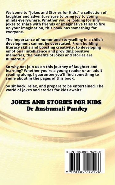 Welcome to ""Jokes and Stories for Kids,"" a collection of laughter and adventure sure to bring joy to young minds everywhere. Whether you're looking for silly jokes to share with friends or imaginative tales to fire up your imagination, this book has something for everyone. The importance of humor and storytelling in a child's development cannot be overstated. From building literacy skills and boosting creativity, to developing emotional intelligence and providing positive memories, the benefits of jokes and stories are numerous. So why not join us on this journey of laughter and learning? Whether you're a young reader or an adult reading along, I guarantee you'll find something to smile about in the pages of this book. So sit back, relax, and prepare to be entertained. The world of jokes and stories for kids awaits!