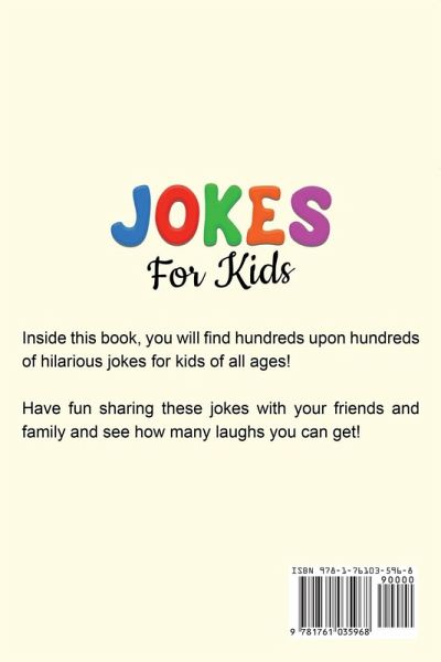 JOKES FOR KIDS Inside this book, you will find hundreds upon hundreds of hilarious jokes for kids of all ages! These jokes have been specifically chosen to be suitable for the whole family Have fun sharing these jokes with your friends and family and see how many laughs you can get!