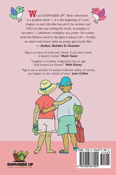 A Wonderfully Hilarious Joke Book for your parents, grandparents, friends and colleagues. You'll want to read these jokes again and again! "Jokes for Retirees and Seniors (That You May Not Want To Tell The Boss) is a fantastic retirement or birthday gift with humor that will last a lifetime. Retirement is very much a "good news-bad news" event in one's life. The "good news" is that you're retiring - the "bad news" is that you're retiring. How the story of retirement unfolds depends on how each individual person looks at retirement. We at DOWNSIDE UP(TM) think retirement is a positive event because it is the beginning of a new chapter in one's life that has yet to be written and YOU are the one writing the book, screenplay or narrative - whichever metaphor you prefer. At DOWNSIDE UP (TM) we believe that no matter what the lifetime event is, the glass is always full-- frankly, we don't even know what an empty glass looks like! One reason for this view is the overwhelming importance of laughter. How one views life is very much a question of perception; and, humor and laughter can and do affect perception in a very positive way. This is in fact the reason why DOWNSIDE UP(TM) was formed as a publishing firm specializing in Joke Books, as well as novelty and specialty books. We may not be able to alter or change anyone's life directly, but we can certainly help the journey be more fun with humor and laughter. Remember, as our company's mascot and logo, Tezzy the Turtle, (TM) says: Have Fun and Enjoy Life. (TM)