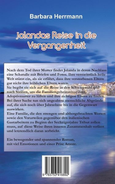 Nach dem Tod ihrer Mutter findet Jolanda in deren Nachlass eine Schatulle mit Briefen und Fotos. Ihre vermeintlich heile Welt stürzt ein, als sie erfährt, dass ihre verstorbenen Eltern gar nicht ihre leiblichen Eltern waren. Sie begibt sie sich auf die Reise in den Schwarzwald und nach Sizilien, um die Familiengeheimnisse ihrer Adoptivmutter zu lüften und ihre richtigen Eltern zu finden. Bei ihrer Suche tun sich ungeahnte menschliche Abgründe auf, die sich noch über Jahrzehnte bis in die Gegenwart auswirken.Eine Familie, die den strengen und althergebrachten Werten sowie den Vorurteilen gegenüber den italienischen Gastarbeitern zu Beginn der Sechzigerjahre Tribut zollen muss, auf diese Weise ihren inneren Zusammenhalt verliert und letztendlich daran zerbricht. Ein bewegender und spannender Roman, mit viel Emotionen und einer Prise Amore.