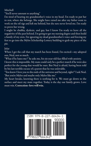 Mitchell "You'll never amount to anything." I'm tired of hearing my grandmother's voice in my head. I'm ready to put her to rest, where she belongs. She might have raised me after my father went to work on the oil rigs and left me behind, but she sure never loved me. I'm ready to prove her wrong. I might be chubby, dyslexic, and gay, but I know I'm ready to leave all the negativity of the past behind. I'm going to get my nursing degree and then build a family of my own. I'm ignoring my dead grandmother's voice and forcing my feet to go into the Mylos Scholarship Lottery building to grab my piece of the pie. Jolar When I get the call that my match has been found, I'm excited-my adopted son, Neal, not so much. "What if he hates me?" he asks me, his six-year-old face filled with anxiety. I know this is impossible. My mate could only be a perfect match if he were also perfect for the young that would be ours. But Neal is afraid, having been told by his last terrible excuse of a parent that he was unlovable. "You know I love you to the ends of the universe and beyond, right?" I ask Neal. "But you're Mylos and maybe only Mylos like me." My heart breaks, knowing there is nothing for it. We must go down to the surface and meet my mate together. Today is the day our family grows. Love must win. Correction-love will win.