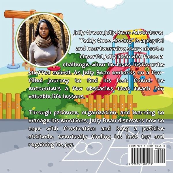 "Jolly Green Jelly Bean Adventure's: Teddy Goes Missing" is a playful and heartwarming story about a cheerful jelly bean who faces a challenge when he loses his favorite stuffed animal. As Jelly Bean embarks on a fun-filled journey to find his lost friend, he encounters a few obstacles that teach him valuable life lessons. Through patience, organization, and learning to manage his emotions, Jelly Bean discovers how to cope with frustration and keep a positive attitude, eventually finding his lost toy and regaining his joy. This story offers both educational and emotional benefits for young children: Educational Value: The book introduces important life skills like organization, problem-solving, and patience in an age-appropriate and entertaining way. By following Jelly Bean's adventure, children learn that staying organized can make finding things easier, and that patience is key when things don't go as planned. It also gently reinforces the idea that taking small steps can solve big problems. Emotional Value: On an emotional level, the book encourages children to recognize and manage their feelings when faced with challenges. Jelly Bean's experience of feeling upset and learning to calm down provides a relatable model for young readers who may feel frustrated or sad in similar situations. The story promotes resilience, emotional regulation, and the idea that it's okay to feel different emotions. It also highlights the joy and comfort of friendship. In summary, the book delivers important lessons through fun, rhymes, and colorful characters, making it an engaging and supportive tool for a child's emotional and cognitive development.
