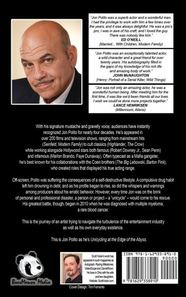 With his signature mustache and gravelly voice, audiences have instantly recognized Jon Polito for nearly four decades. He's appeared in over 200 films and television shows, ranging from mainstream hits (Seinfeld, Modern Family) to cult classics (Highlander, The Crow) while working alongside Hollywood stars both famous (Robert Downey Jr., Sean Penn) and infamous (Marlon Brando, Faye Dunaway). Often typecast as a Mafia gangster, he's best known for his collaborations with the Coen brothers (The Big Lebowski, Barton Fink), who created roles that displayed his true acting range. Off-screen, Polito was suffering the consequences of a self-destructive lifestyle. A compulsive drug habit left him drowning in debt, and as his profile began to rise, so did the whispers and warnings among producers about his erratic behavior. However, every time Jon was on the brink of personal and professional disaster, a person or project - a "unicycle" - would come to his rescue. His greatest battle, though, began in 2010 when he was diagnosed with multiple myeloma, a rare blood cancer. This is the journey of an artist trying to navigate the turbulence of the entertainment industry as well as his own everyday existence. This is Jon Polito as he's Unicycling at the Edge of the Abyss.