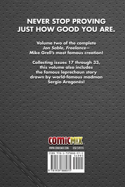 NEVER STOP PROVING JUST HOW GOOD YOU ARE. Volume two of the complete Jon Sable, Freelance - Mike Grell's most famous creation! Collecting issues 17 through 33, this volume also includes the famous leprechaun story drawn by world-famous madman Sergio Aragonés!