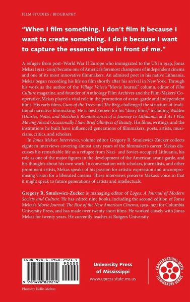 A refugee from post-World War II Europe who immigrated to the US in 1949, Jonas Mekas (1922-2019) became one of America's foremost champions of independent cinema and one of its most innovative filmmakers. An admired poet in his native Lithuania, Mekas began recording his life on film shortly after his arrival in New York. Through his work as the author of the Village Voice's "Movie Journal" column, editor of Film Culture magazine, and founder of Anthology Film Archives and the Film-Makers' Cooperative, Mekas played a vital role in the promotion of avant-garde and independent films. His early films, Guns of the Trees and The Brig, challenged the structure of traditional narrative filmmaking. He is best known for his "diary films," including Walden (Diaries, Notes, and Sketches); Reminiscences of a Journey to Lithuania; and As I Was Moving Ahead Occasionally I Saw Brief Glimpses of Beauty. His films, writings, and the institutions he built have influenced generations of filmmakers, poets, artists, musicians, critics, and scholars. In Jonas Mekas: Interviews, volume editor Gregory R. Smulewicz-Zucker collects eighteen interviews covering almost sixty years of the filmmaker's career. Mekas discusses his remarkable life as a refugee from Nazi- and Soviet-occupied Lithuania, his role as one of the major figures in the development of the American avant-garde, and his thoughts about his own work. In conversation with scholars, journalists, and other prominent artists, Mekas speaks of his passion for artistic expression and uncompromising vision for a liberated cinema. These interviews preserve Mekas's voice so that it might speak to future generations of artists and intellectuals.