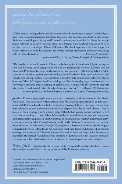 Jonathan Edwards (1703-1758) was a preacher, theologian, and missionary to the Native Americans. This book asserts that Jonathan Edwards stood firmly on the Reformed tradition in the doctrine of justification.