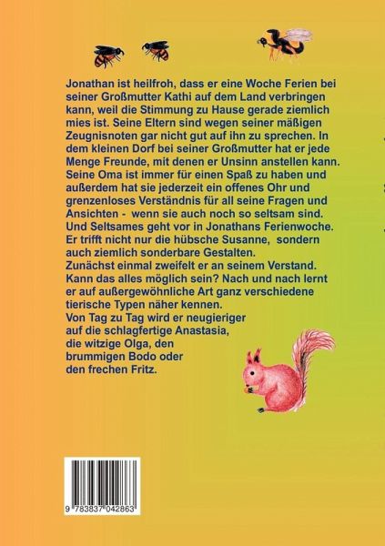 Jonathan ist heilfroh, dass er eine Woche Ferien bei seiner Großmutter Kathi auf dem Land verbringen kann, weil die Stimmung zu Hause gerade ziemlich mies ist. Seine Eltern sind wegen seiner mäßigen Zeugnisnoten gar nicht gut auf ihn zu sprechen.In dem kleinen Dorf bei seiner Großmutter hat er jede Menge Freunde, mit denen er Unsinn anstellen kann.Seine Oma ist immer für einen Spaß zu haben und außerdem hat sie jederzeit ein offenes Ohr und grenzenloses Verständnis für all seine Fragen und Ansichten - wenn sie auch noch so seltsam sind.Und Seltsames geht vor in Jonathans Ferienwoche.Er trifft nicht nur die hübsche Susanne, sondern auch ziemlich sonderbare Gestalten. Zunächst einmal zweifelt er an seinem Verstand. Kann das alles möglich sein? Nach und nach lernt er auf außergewöhnliche Art ganz verschiedene tierische Typen näher kennen. Von Tag zu Tag wird er neugieriger auf die schlagfertige Anastasia, die witzige Olga, den brummigen Bodo oder den frechen Fritz.
