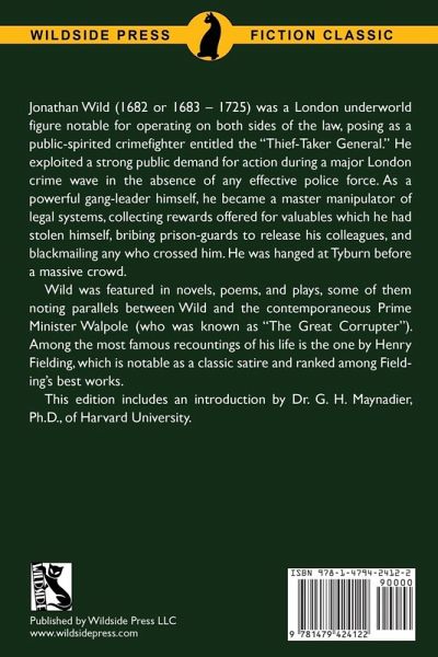 Jonathan Wild (1682 or 1683 - 1725) was a London underworld figure notable for operating on both sides of the law, posing as a public-spirited crimefighter entitled the "Thief-Taker General." He exploited a strong public demand for action during a major London crime wave in the absence of any effective police force. As a powerful gang-leader himself, he became a master manipulator of legal systems, collecting rewards offered for valuables which he had stolen himself, bribing prison-guards to release his colleagues, and blackmailing any who crossed him. He was hanged at Tyburn before a massive crowd. Wild was featured in novels, poems, and plays, some of them noting parallels between Wild and the contemporaneous Prime Minister Walpole (who was known as "The Great Corrupter"). Among the most famous recountings of his life is the one by Henry Fielding, which is notable as a classic satire and ranked among Fielding's best works. This edition includes an introduction by Dr. G. H. Maynadier, Ph.D., of Harvard University.