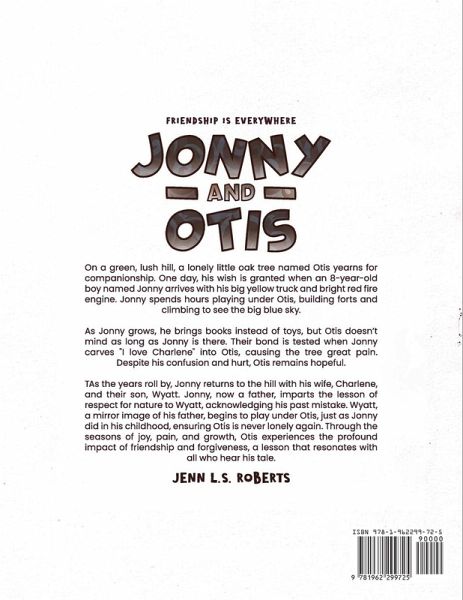 On a green, lush hill, a lonely little oak tree named Otis yearns for companionship. One day, his wish is granted when an 8-year-old boy named Jonny arrives with his big yellow truck and bright red fire engine. Jonny spends hours playing under Otis, building forts and climbing to see the big blue sky. As Jonny grows, he brings books instead of toys, but Otis doesn't mind as long as Jonny is there. Their bond is tested when Jonny carves "I love Charlene" into Otis, causing the tree great pain. Despite his confusion and hurt, Otis remains hopeful. TAs the years roll by, Jonny returns to the hill with his wife, Charlene, and their son, Wyatt. Jonny, now a father, imparts the lesson of respect for nature to Wyatt, acknowledging his past mistake. Wyatt, a mirror image of his father, begins to play under Otis, just as Jonny did in his childhood, ensuring Otis is never lonely again. Through the seasons of joy, pain, and growth, Otis experiences the profound impact of friendship and forgiveness, a lesson that resonates with all who hear his tale.