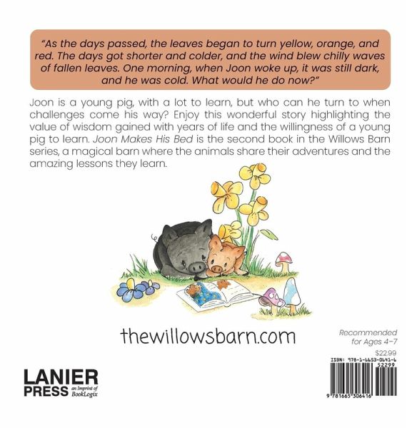 Joon is a young pig, with a lot to learn, but who can he turn to when challenges come his way? Enjoy this wonderful story highlighting the value of wisdom gained with years of life and the willingness of a young pig to learn. Joon Makes His Bed is the second book in the Willows Barn series, a magical barn where the animals share their adventures and the amazing lessons they learn.