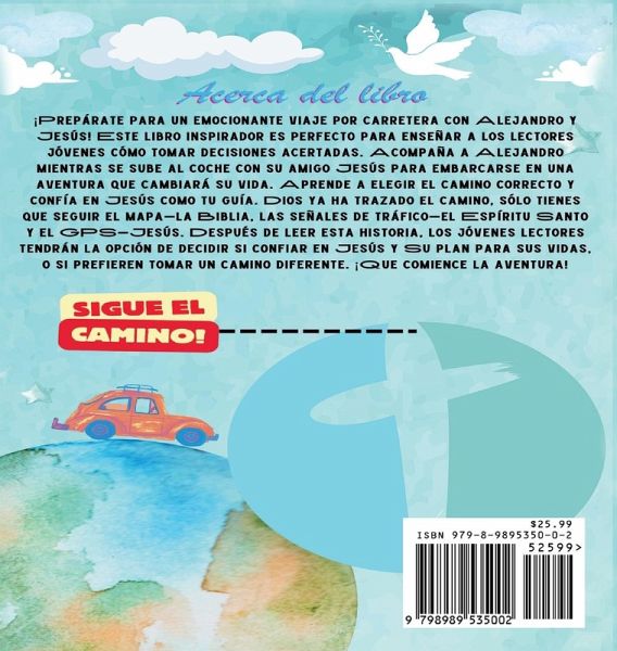 ¡Prepárate para un emocionante viaje por carretera con Alejandro yJesús! Este libro inspirador es perfecto para enseñar a los lectoresjóvenes cómo tomar decisiones acertadas. Acompaña a Alejandromientras se sube al coche con su amigo Jesús para embarcarse en unaaventura que cambiará su vida. Aprende a elegir el camino correcto yconfía en Jesús como tu guía. Dios ya ha trazado el camino, sólo tienesque seguir el mapa-la Biblia, las señales de tráfico-el Espíritu Santoy el GPS-Jesús. Después de leer esta historia, los jóvenes lectorestendrán la opción de decidir si confiar en Jesús y Su plan para sus vidas,o si prefieren tomar un camino diferente. ¡Que comience la aventura!
