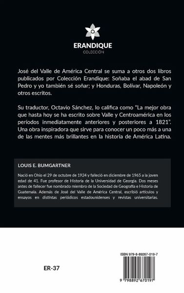José del Valle de América Central se suma a otros dos libros publicados por Colección Erandique: Soñaba el abad de San Pedro y yo también sé soñar; y Honduras, Bolívar, Napoleón y otros escritos. Su traductor, Octavio Sánchez, lo califica como "La mejor obra que hasta hoy se ha escrito sobre Valle y Centroamérica en los períodos inmediatamente anteriores y posteriores a 1821". Una obra inspiradora que sirve para conocer un poco más a una de las mentes más brillantes en la historia de América Latina.