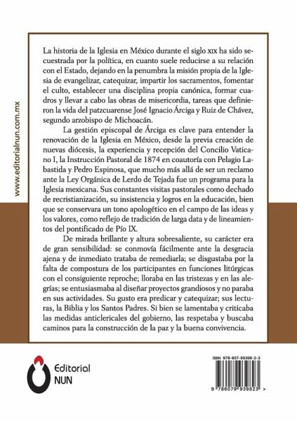 Se trata de la primera parte de la biografía de José Ignacio Árciga y Ruiz de Chávez, obispo auxiliar de Clemente de Jesús Munguía, y luego segundo arzobispo de Michoacán. Principia con el nacimiento del biografiado, 1830, y termina con un informe al papa llamado Relación de visita ad limina, suscrito en 1878. Queda, pues, pendiente la segunda parte, de 1879 a 1900, año de su fallecimiento.Comprende su formación en Pátzcuaro y en el Seminario Tridentino de Morelia, tanto en estudios como en valores y normas de conducta; el magisterio que desempeñó en matemáticas y teología, la expulsión que padeció junto con todo el seminario a causa de la ocupación del edificio por tropas de Epitacio Huerta; el destierro y continuación del magisterio en Celaya, el ministerio de párroco en la ciudad de Guanajuato. Se da el contexto eclesiástico y nacional: el triunfo del liberalismo, la Intervención francesa, la creación de nuevas provincias y diócesis, la desilusión del imperio de Maximiliano. Su nombramiento como obispo auxiliar de Munguía y la vista pastoral que emprende en algunas parroquias de la diócesis de Zamora por enfermedad del Obispo José Antonio de la Peña. Su elevación a segundo arzobispo de Michoacán, que incluía gran parte del Bajío guanajuatense. Su ejemplar visita a La Piedad.El viaje a Europa con motivo del Concilio Vaticano I: el significado y trascendencia de sus definiciones y de proyectos no concluidos pero discutidos. El retorno y la redefinición de proyectos: la incesante visita pastoral, con la colaboración de varios clérigos, a todas las parroquias del arzobispado, que además de inspecciones formales incluía reevangelización, catequesis en todos los niveles, numerosas confirmaciones, confesiones, comuniones y matrimonios; reforma de costumbres, implantación de la disciplina del clero, reconstrucción o levantamiento de iglesias, restauración del esplendor del culto, reencauzamiento de la piedad popular. El impulso a los cultos eucarístico, del Sagrado Corazón y mariano. La renovación del Cabildo catedral y del Seminario conciliar, poniendo al frente a José María Cázares, institución de alto nivel académico frente al positivismo. La resistencia pacífica y activa frente a la Reforma exacerbada de Lerdo de Tejada, que incluyó merma de actividades y personal de la Iglesia. Todo en el contexto del pontificado de Pío IX y el inicio del de León XIII, que coincidía con el advenimiento del porfiriato, la consagración de Cázares como segundo obispo de Zamora y la redacción de la visita ad limina de 1878.