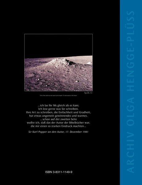... ich las ihr Manuskript gleich als es kam; Ich lese gerne, was Sie schreiben. Ihre Art zu schreiben, die Einfachheit und Geradheit, hat etwas ungemein Gewinnendes und Warmes. ... schon auf der zweiten Seite wusste ich, dass das der Autor der Bibelbücher war, die mir einen so starken Eindruck machten... Sir Karl Popper an den Autor, 17. Dezember 1981