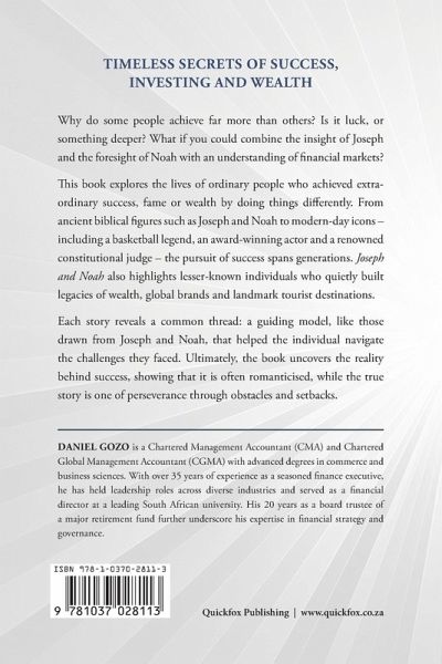 What can ancient wisdom teach us about thriving in today's world? Why do some people achieve far more than others? Is it luck, or something deeper? What if you could combine the insight of Joseph and the foresight of Noah with a deep understanding of financial markets? Joseph and Noah: What Ancient Wisdom can Teach us About Thriving in Today's World explores the lives of ordinary individuals who achieved extraordinary success, fame, or wealth by thinking and acting differently. From ancient biblical figures like Joseph and Noah to modern-day icons-including a basketball legend, an award-winning actor, and a renowned constitutional judge-the pursuit of success transcends generations. This book also highlights lesser-known individuals who quietly built legacies of wealth, global brands, and landmark tourist destinations. Each story reveals a common thread-a guiding model-similar to the principles drawn from Joseph and Noah, which helped these individuals navigate challenges. Ultimately, Joseph and Noah uncovers the truth behind success, debunking its often-romanticized portrayal and instead revealing a reality shaped by perseverance, resilience, and strategic decision-making. The book is structured into three insightful sections: Part 1: Patterns, Catastrophes, and Financial Markets Part 2: The Strength of Thought: Investing Simplified Part 3: Mindsets: Breaking Boundaries, Overcoming Barriers, and Redefining Limits The author covers various aspects of success and building wealth, from leveraging rental properties and weathering the storms of fluctuating stock markets and crashes, to developing grit, resilience and self-belief, even when faced with failure or insurmountable odds. The advice is sound and skilfully told in a narrative that makes the wisdom both accessible and memorable.