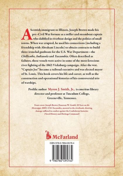 A Scottish immigrant to Illinois, Joseph Brown made his pre-Civil War fortune as a miller and steamboat captain who dabbled in riverboat design and the politics of small towns. When war erupted, he used his connections (including a friendship with Abraham Lincoln) to obtain contracts to build three ironclad gunboats for the U.S. War Department--the Chillicothe, Indianola and Tuscumbia. Often described as failures, these vessels were active in some of the most fer"documents the life and career of Joseph Brown, a miller and steamboat captain who built three ironclad gunboats for the US War Department"ocious river fighting of the 1863 Vicksburg campaign. After the war, "Captain Joe" became a railroad executive and was elected mayor of St. Louis. This book covers his life and career, as well as the construction and operational histories of his controversial trio of warships.