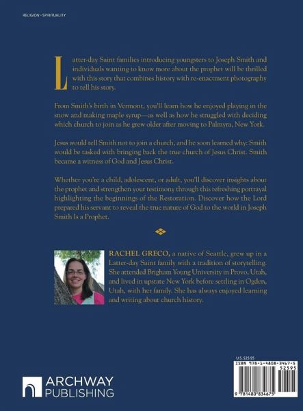 Latter-day Saint families introducing youngsters to Joseph Smith and individuals wanting to know more about the prophet will be thrilled with this story that combines history with re-enactment photography to tell his story. From Smith's birth in Vermont, you'll learn how he enjoyed playing in the snow and making maple syrup-as well as how he struggled with deciding which church to join as he grew older after moving to Palmyra, New York. Jesus would tell Smith not to join a church, and he soon learned why: Smith would be tasked with bringing back the true church of Jesus Christ. Smith became a witness of God and Jesus Christ. Whether you're a child, adolescent, or adult, you'll discover insights about the prophet and strengthen your testimony through this refreshing portrayal highlighting the beginnings of the Restoration. Discover how the Lord prepared his servant to reveal the true nature of God to the world in Joseph Smith Is a Prophet.