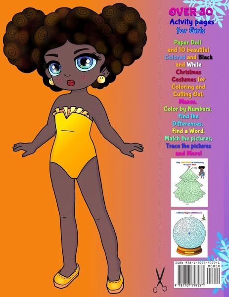 This children’s activity book is full of beautiful Christmas Dresses. For any girl who loves Paper Dolls, this book makes a nice gift for ages 4 to 8 years for Christmas and New Year! Please note: This is not an adult coloring book and the style is that of an ordinary child's coloring and activity book. What you will find inside the book: Colored Paper Doll on the back cover and 10 beautiful Dresses with the Crowns for Coloring and Cutting Out (colored and black and white), Mazes, Color by Numbers, Find the Differences, Match the pictures, Trace the pictures and another activities. A nice large format (A4 size) for small hands to enjoy. Activities such as coloring will improve your child's pencil grip, as well as helping them to relax, self regulate their mood and develop their imagination. Other activities help with developing cognitive skills. So if your child loves playing with the Paper Dolls, then order your copy today gorgeous JOSEPHINE and CHRISTMAS Activity Book For Kids Ages 4-8!!!