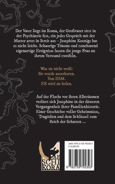 Was Dich erwartet? Eine Protagonistin, die sich ihren fürchterlichsten Ängsten stellen muss. Eine zerrissene Familie, gespalten durch die düsteren Geheimnisse ihrer Historie. Eine Paralleldimension, die all das Schlechte unserer Welt in sich konzentriert. Ein erbitterter Kampf um die Hoffnung, die bekanntlich zuletzt stirbt. Eine Geschichte voller Geheimnisse, Tragödien und dem Schlüssel zum Reich der Schatten ...